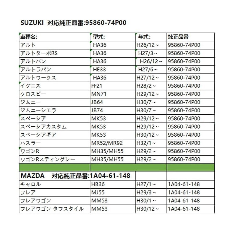- Mazda Compatible Models: Carol HB36S, Flare MJ55S/MJ95s, Flare Crossover MS52s/MS92s, Flare Wagon MM53s