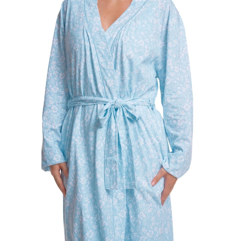- COMFORTABLE DESIGN: Soft, lightweight robe in a delicate light blue or soft pink floral print pattern with long sleeves and mid-length cut