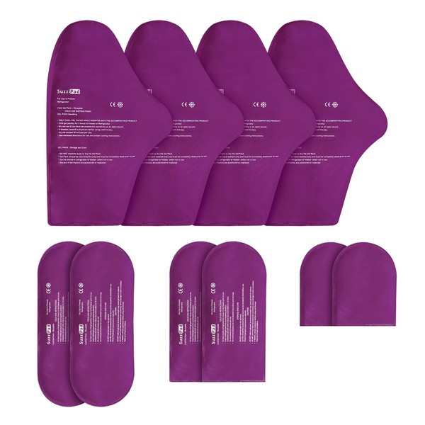 SuzziPad Replacement Ice Gel Packs for Cold Therapy Gloves and Socks(10-Piece Set), S/M, Purple