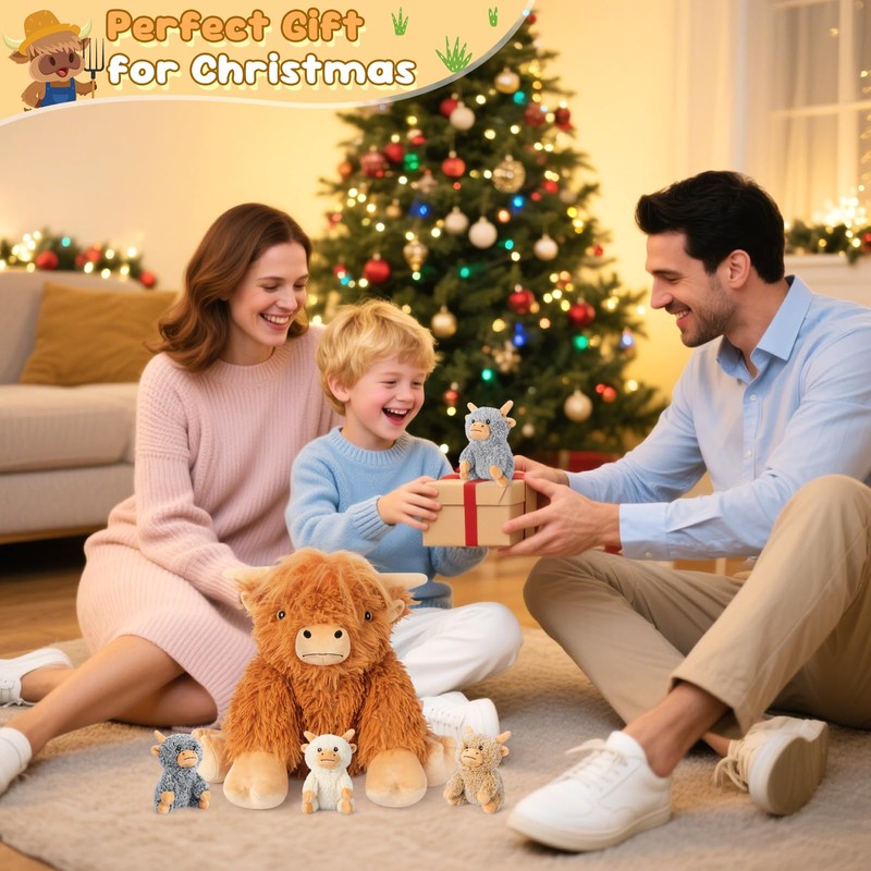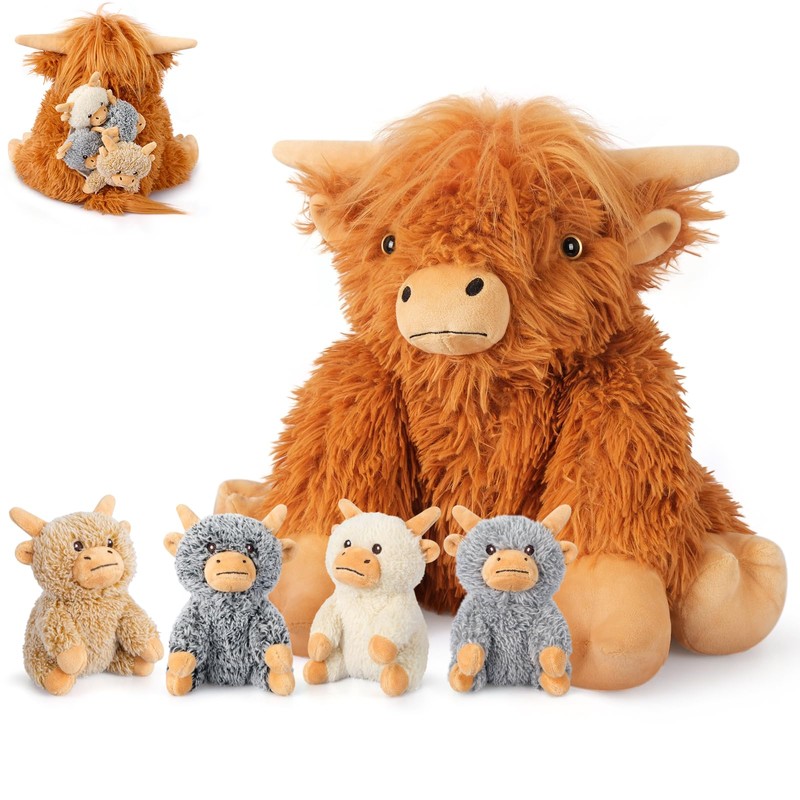SuzziPals 5-in-1 Highland Cow Stuffed Animals with Babies Inside, 5PC Set Highland Cow Plush Mommy & 4 Babies, Soft Pillow Plushies Decor, Cute 3 to 8 Year Old Girl Gifts, Imaginative Play Toy (Cows)