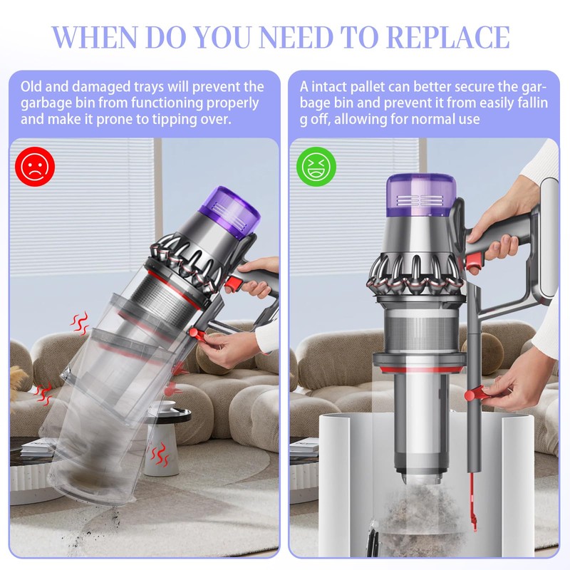 - Perfect Replacement: This bin runner replacement parts match the out size series vacuum cleaner 10.6 inch dust bin perfectly. It completely restores the function of the cyclone baffle, solves the problems of dust bucket falling off and failure to open the dust bucket cover automatically