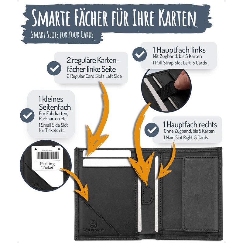 - Change bag minimalist men's genuine leather cowhide wolf wolfstrom wolfstroem wolfstroem wolfström card wallet card case secure men's wallets safety wallet men's shielded unisex