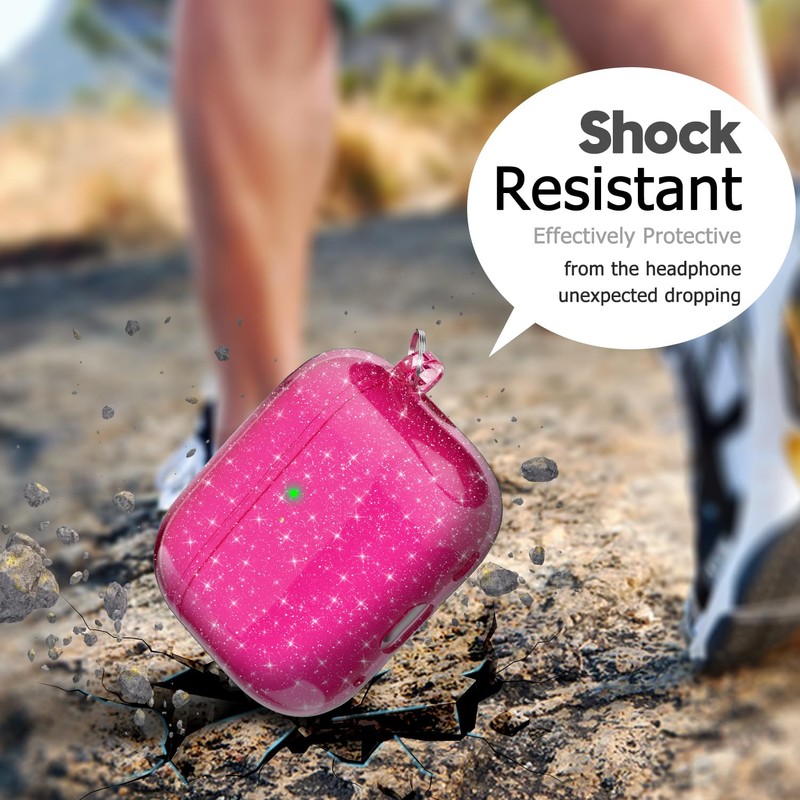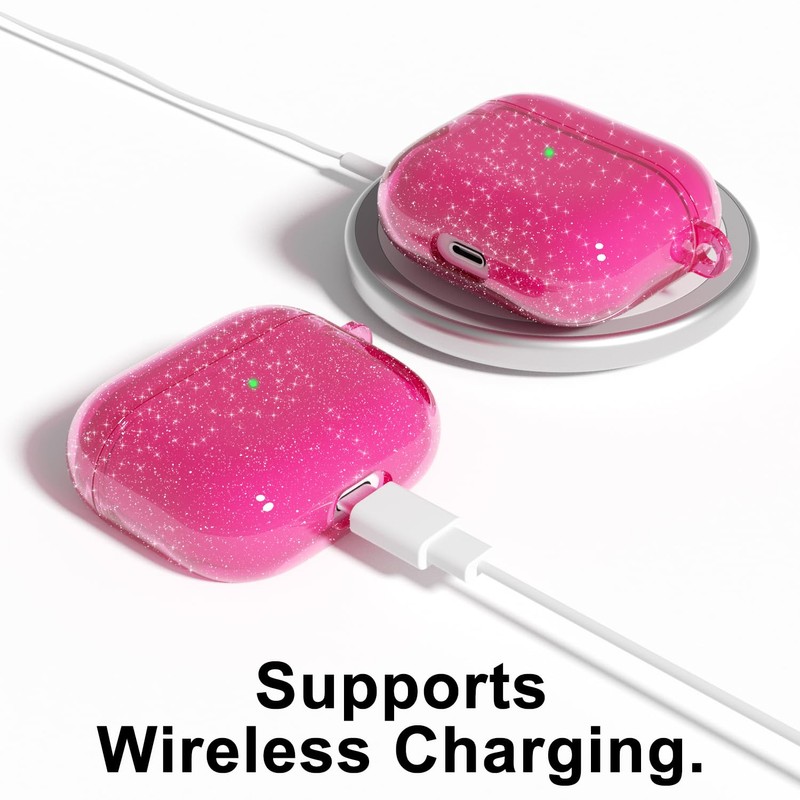 Svanove for Airpods Pro 3rd Generation Case Clear Glitter (2021), Cute Sparkle Bling Shiny Sparkly Transparent Airpods 3 Case Cover, Soft TPU Airpods Case for Women Girl, Neon Hot Pink