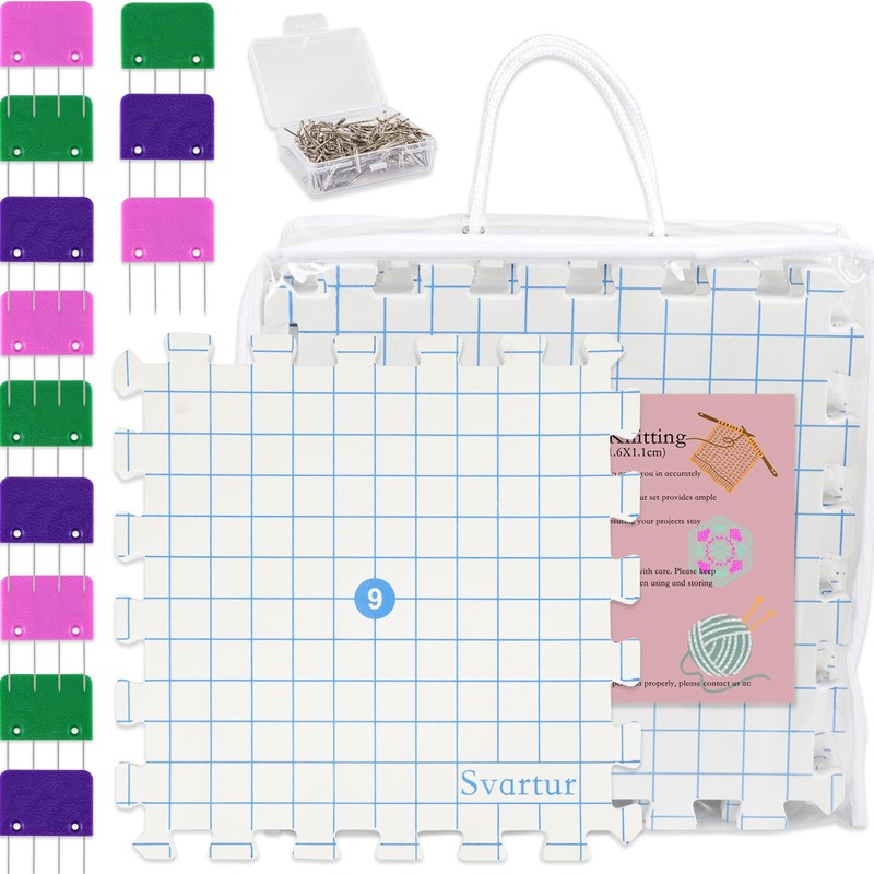 - 【Complete Set】: This Svartur knitting supplies set comes with 9 interlocking blocking mats, 100 T-pins, 12 small crochet blocking combs, and a convenient storage bag, providing everything you need for blocking your knitting and crochet projects.