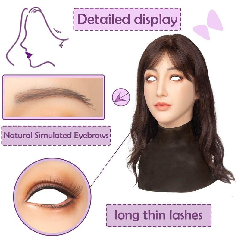 • 【User-friendly Design】SVBEEFAR Alice Silicone Mask eyebrows are manually punched. Mouth can be opened for talking, eating and drinking. You can also apply makeup onto the mask as you like.