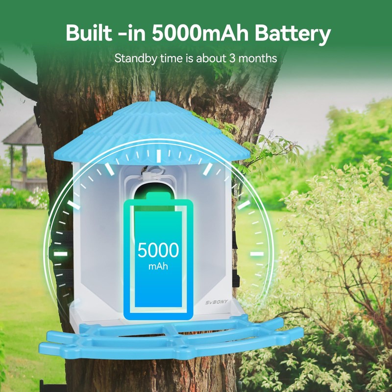 Svbony SC101 Smart Bird Feeder, 1080P with Camera WIFI Record Bird Videos Auto Capture Garden Bird, Detection Smart AI Identify 2.4G WIFI Night Vision Waterproof, Wild Bird Feeding Support Sharing