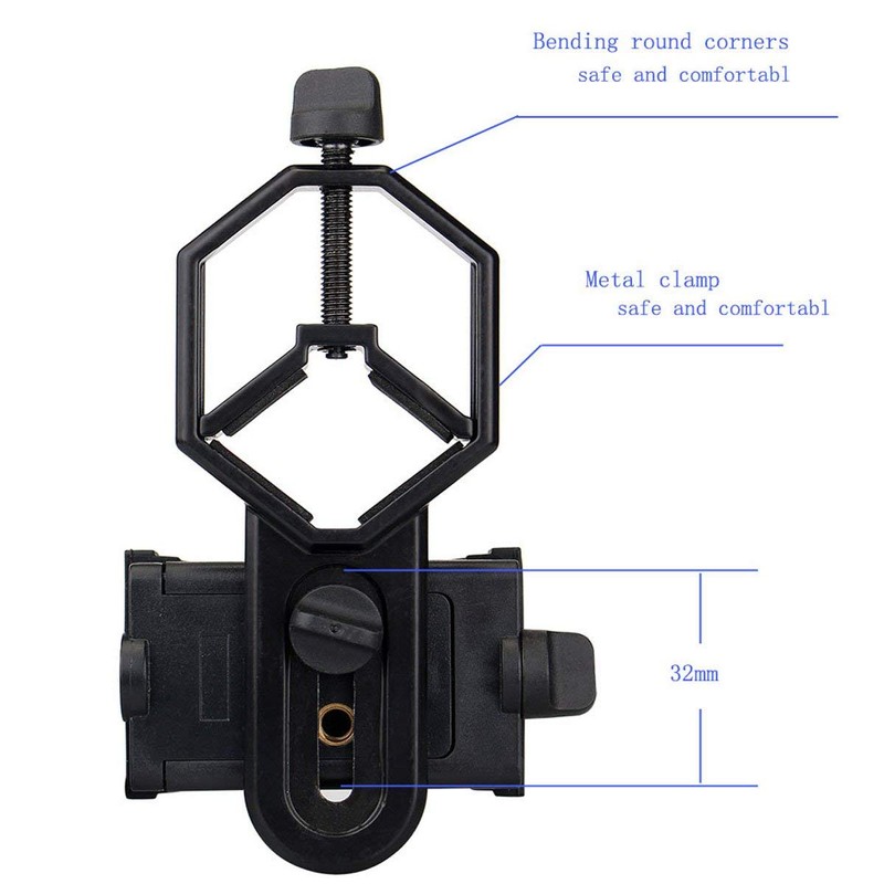 Universal cell phone adapter mount allows to connect a multitude of optics to smart phones;then use their built in camera apps to take amazing pictures and videos