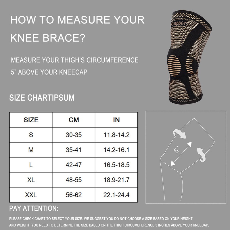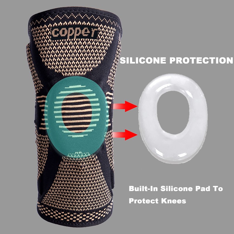 SVDpirit Professional Copper Knee Brace (1pc),Knee Compression Sleeve Support for Men Women.Patella Gel Pads & Side Stabilizers, Protect Meniscus Tear,ACL,Arthritis,Joint Pain Relief 1002CS