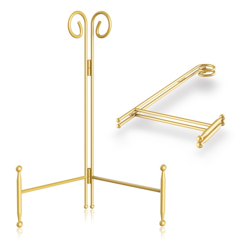 SVENJBB Plate Holder Display Stand, 6 Inch Decorative Plate Stands for Display, Gold Iron Easel Display Stand for Picture, Book, Photo Frame and Decorative Plates (2 Pack)