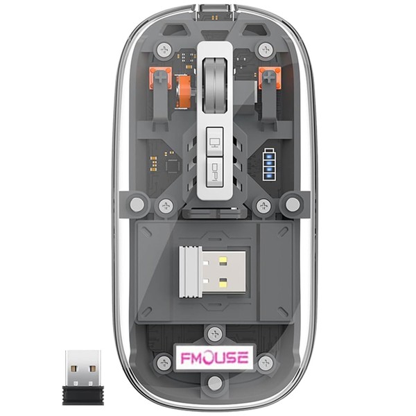 【Magnetic Design】: This rechargeable wireless mouse has a unique magnetic transparent upper cover. When the top cover is placed near the bottom of the mouse, the magnets will automatically align accurately, allowing you to smoothly fit the mouse even with your eyes closed. Through the transparent top cover, you can see the precise design of the components arranged inside the transparent body.