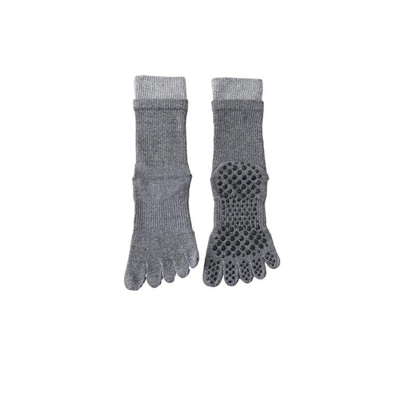 svlftecon Women Yoga Pilates Socks with Grips Non Slip Full Toe Cotton Polyester Spandex for All Seasons Crew Socks Series 11, Gray, 1 Pair, Barrel Height 19, Small