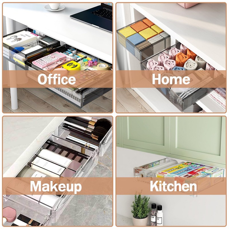 - Reliable Quality Material : Under counter drawer for under desk is made of good quality plastic for more reliable and sturdy performance. Smooth surface and rounded corners, no sharp appearance, comfortable hand feel
