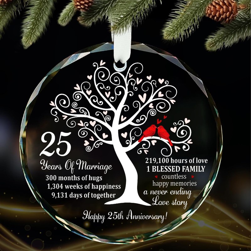 - 25th Anniversary Ornament : Imagine the gentle glow it will bring to their home, reflecting not just light, but the comforting warmth of half a century spent together - a truly heartwarming symbol of their lasting companionship