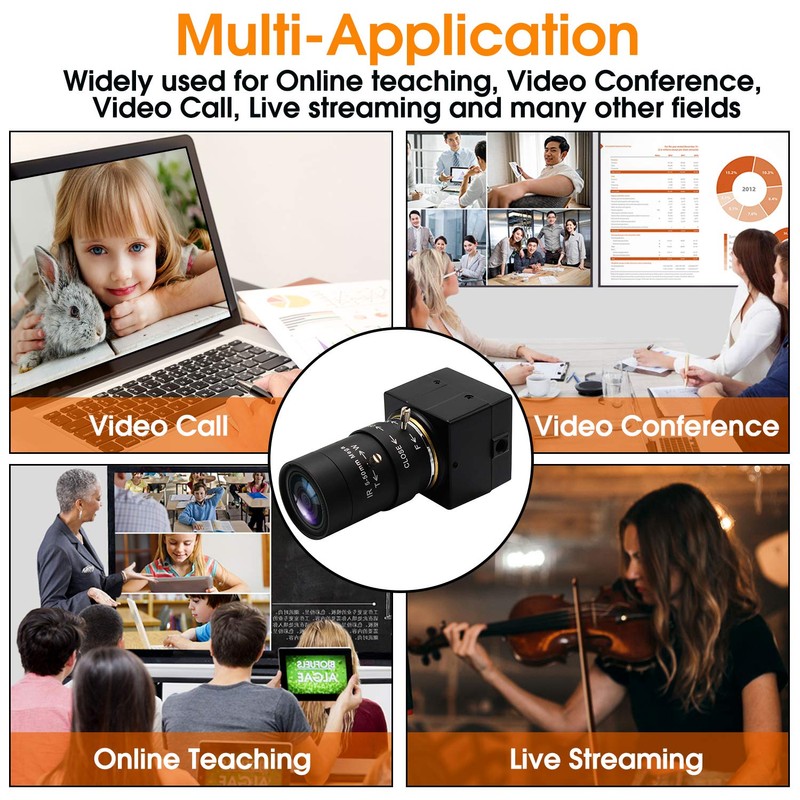 • 【10X Optical Zoom】Webcam with CS Mount 5-50mm varifocal lens, manual adjustments for different distance and viewing angles. You can focus in close-ups or make long distance shots,minimum focusing can down to few centimeters