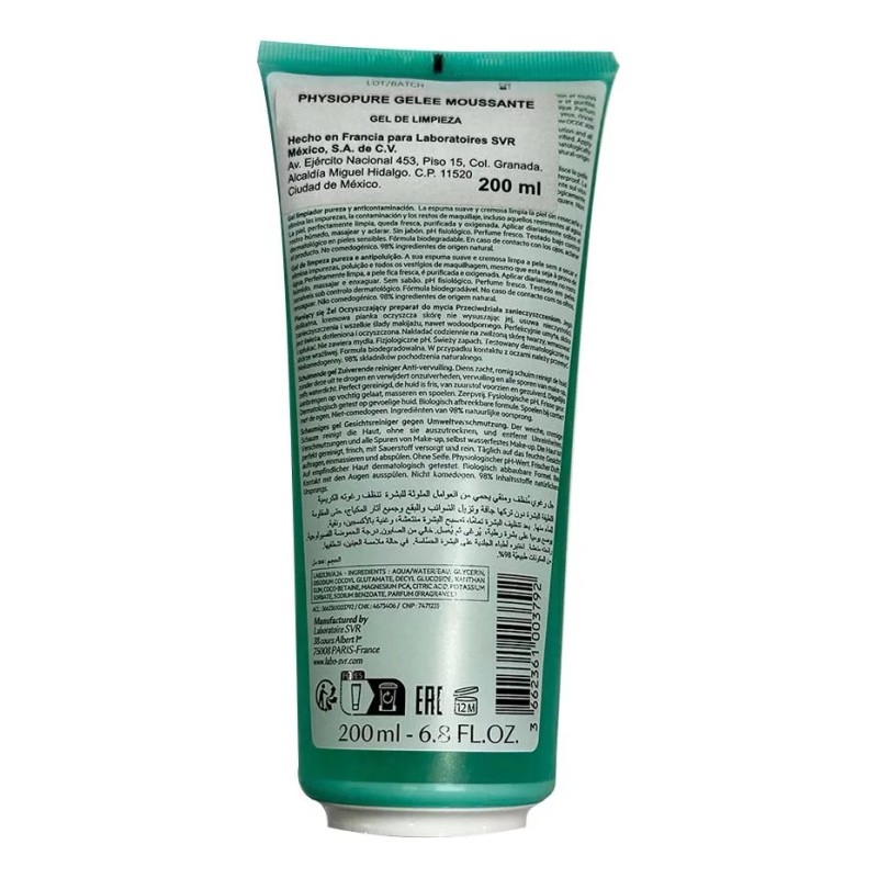 Phyisopure Gelee Moussante. Gel dermolimpiador facial . Sin Jabón, ideal para limpiar pieles secas delicadas. Cont. 200 ml.