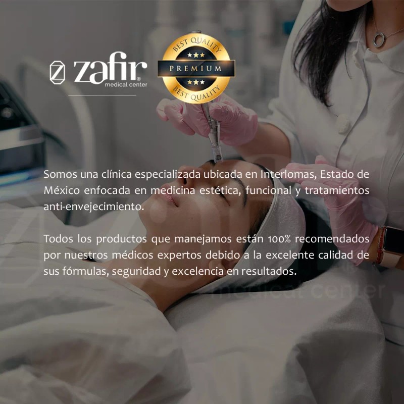 Zafir Medical es una clínica especializada ubicada en Interlomas, Edo. Mex. enfocada en la medicina estética, funcional, y tratamientos antienvejecimiento. Todos los productos que manejamos están 100% recomendados por nuestros expertos debido a la excelente calidad de sus fórmulas, seguridad y excelencia en resultados.