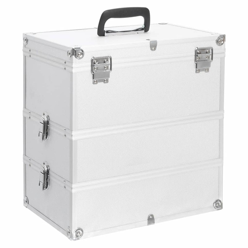SVRCK Elegant Silver Makeup Case for Effortless Organization, Portable with 3 Detachable Tiers, Cosmetics Lovers