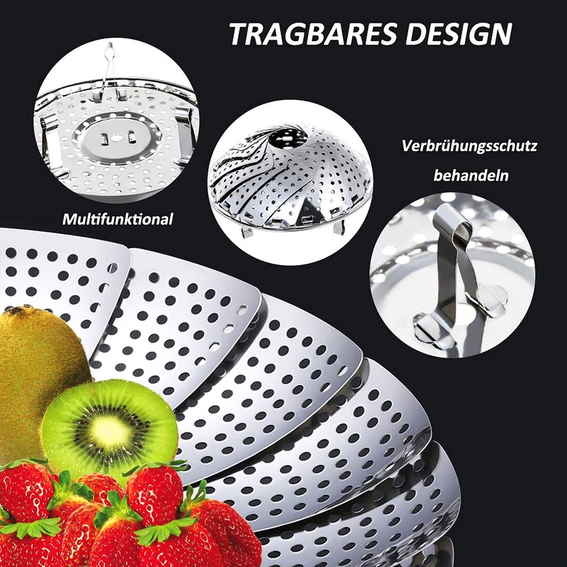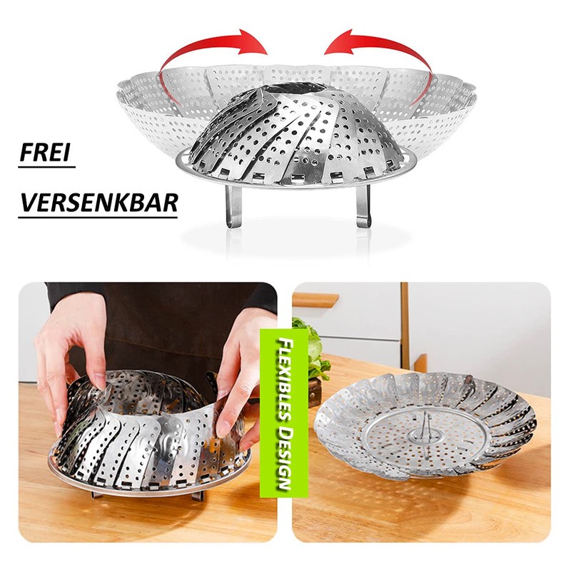 SVUPUE Steamer Insert, Diameter 24 cm, Vegetable Steamer, Stainless Steel Steamer, Steamer Insert, for Vegetables, Pans and Various Cooking Processes