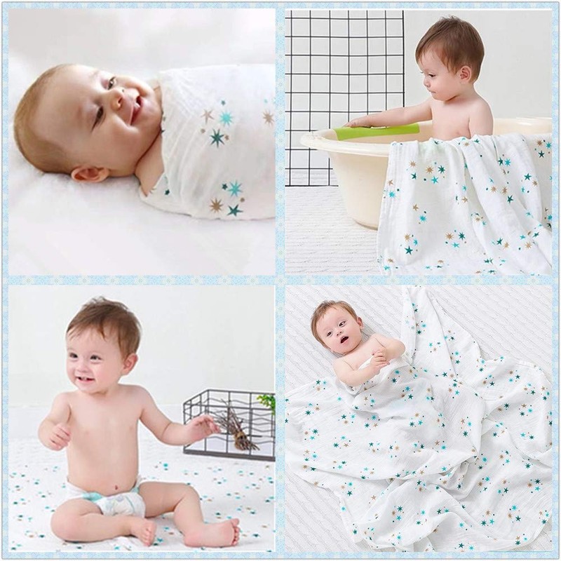 - (Useful Baby Gauze) Not only can you be discharged in hospital swaddles, but it can also be used as a bath gauze, bed sheet, large bath towel, nursing cape, blanket, baby stroller awning cover, diaper changing sheet, preventing sudden milk spiting, as a play mat, bed sheet, or as a large bath towel