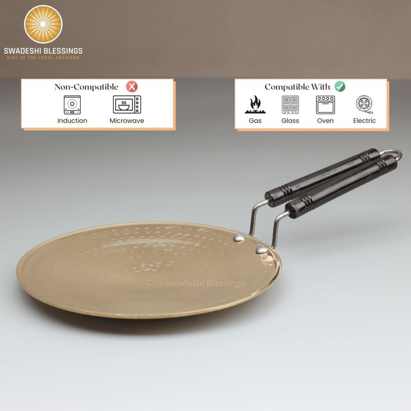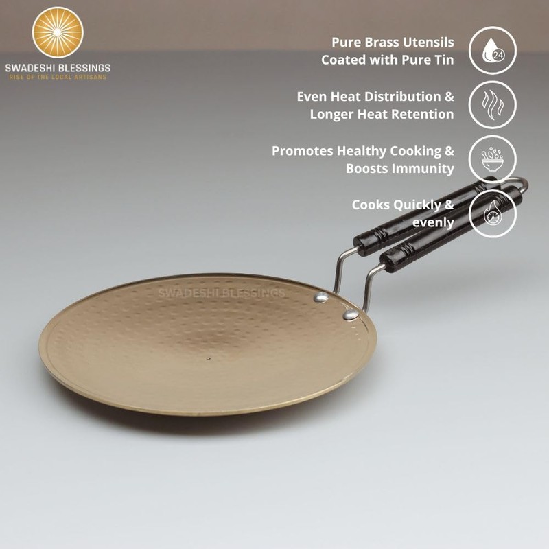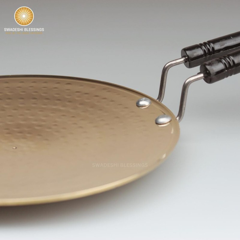 SWADESHI BLESSINGS Exclusive Range Brass Tawa/Teflon-Free/Naturally Non-Stick Brass Utensils with Tin Coating (9.5 Inches)