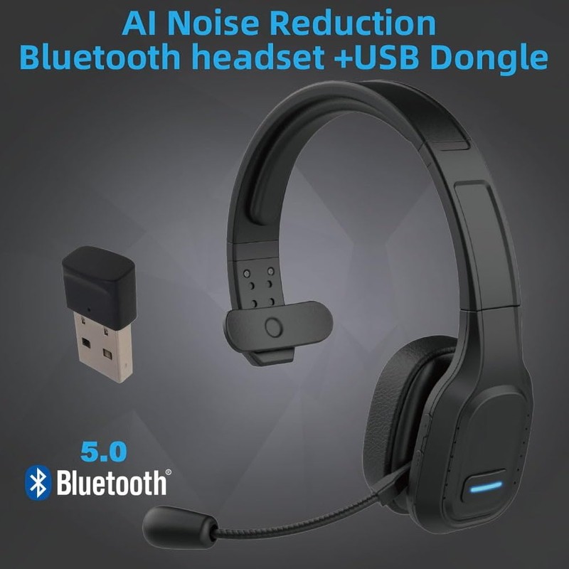 - Lightweight, adjustable Bluetooth headset with 2800 rotating mic, 400hr standby, 30hr use, and USB dongle. Strong signal for easy communication.: