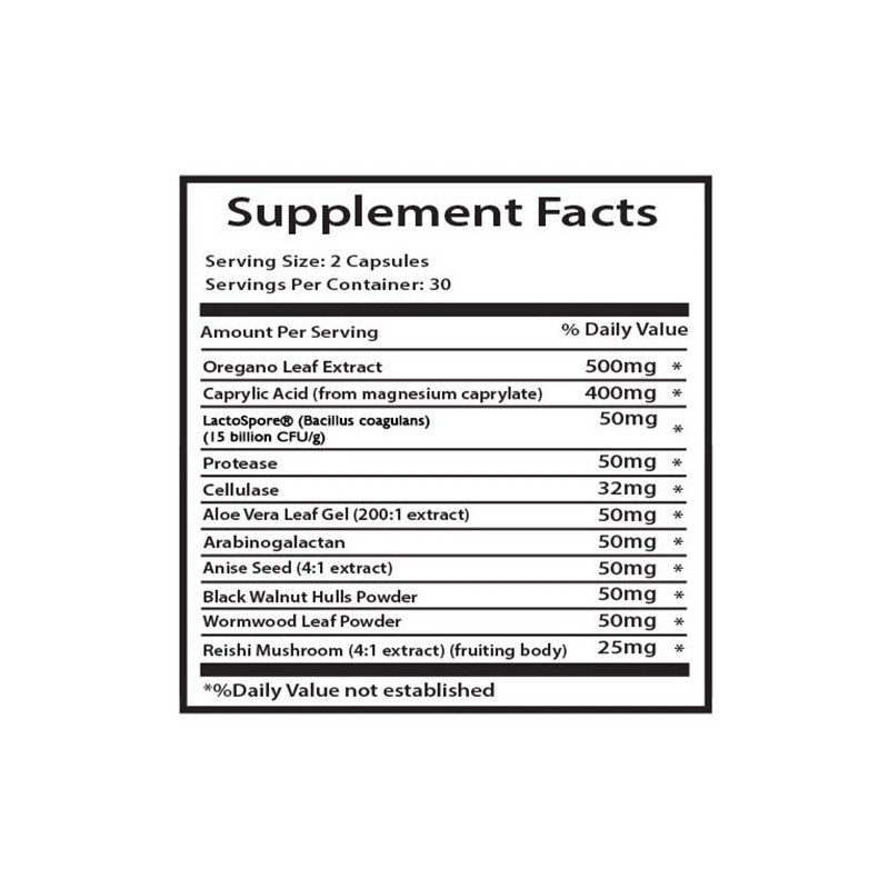 • Active Ingredients: Black Walnut Hull, Wormwood, Oregano Leaf Powder, Aloe Vera Leaf