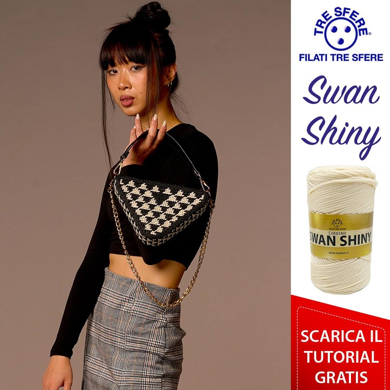 Swan Shiny Tre Sfere 250g 250m 2mm Thick 100% Polypropylene Cord for Bags, Clutch Purses with Knitting or Crochet Hooks (Cream, 16)