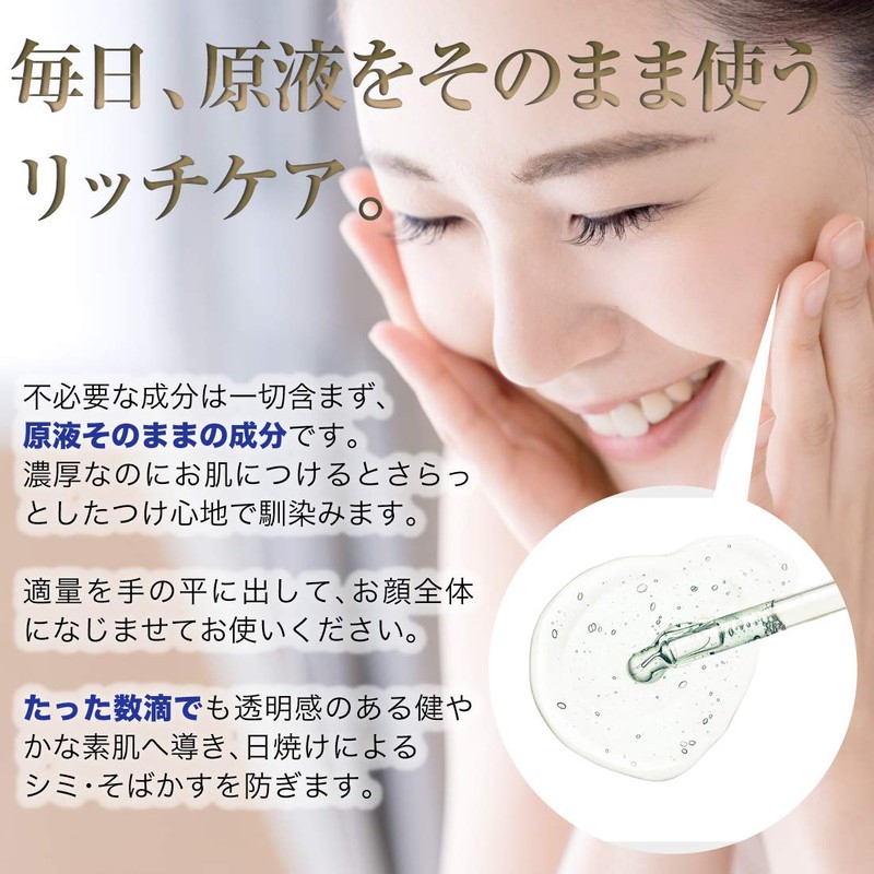 - (Thick & High Concentration Solution ) It will easily adapt to your skin and will not feel sticky. Only a few drops will give you full face care. After washing your face or applying your skin with lotion, take an appropriate amount at your preferred time and make it fit your entire face. Can be used for dull skin. Can be stacked with the same Swan cosmetic solution. In that case, Collagen, Elastin, Hyaluronic Acid, Placenta and VC solution can be stacked in any order, but Squalane solution is recommended to use it at the end. (*When you attach the squalane, the liquid used after it becomes difficult to penetrate it. )