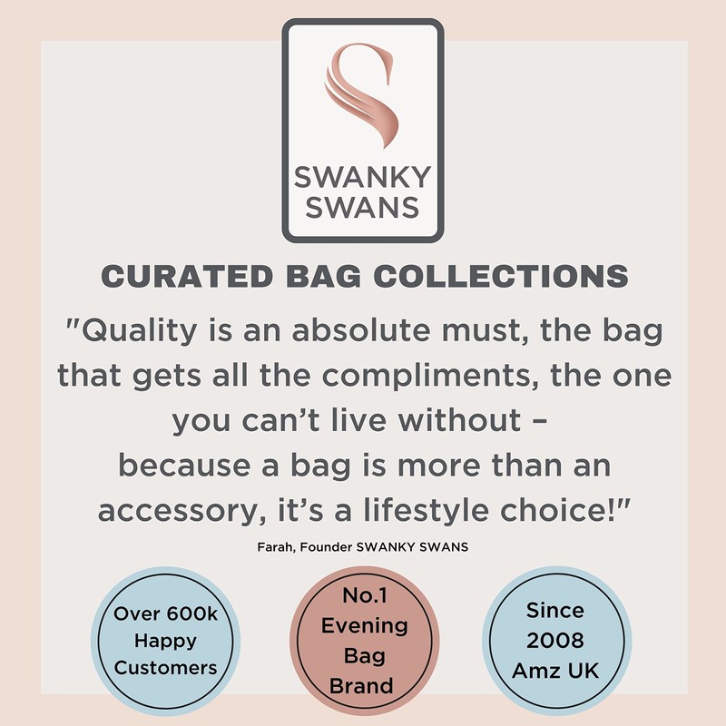 - GUARANTEED - We love these Clutches and we are sure you will too. However if for any reason you don't, just send it back our way for a full refund. Buy with confidence, SWANKYSWANS is a trusted British Brand.