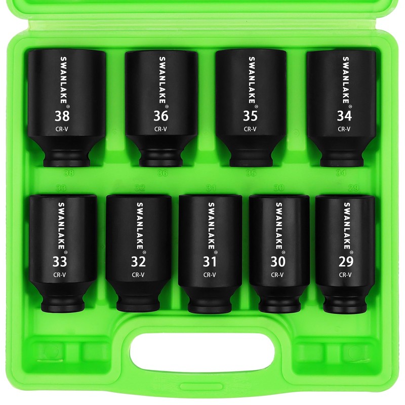SWANLAKE 9PCS 1/2" Metric Impact Socket Set, Spindle Axle Nut Impact Socket,29mm-38mm,CR-V
