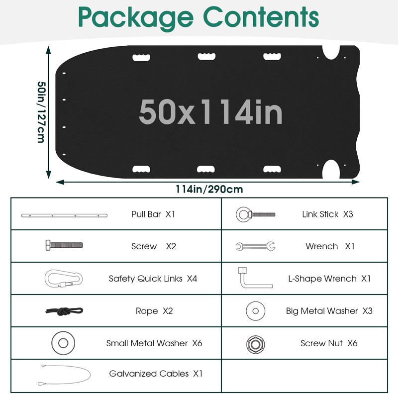 SWANSOFT 50'' x 114'' Extra-Large Yard Drag Sled with Pull Cables, Heavy Duty Yard Sled 1/8 HDPE Thickened Drag Mat for Debris, Leaves, Construction Materials, Logs