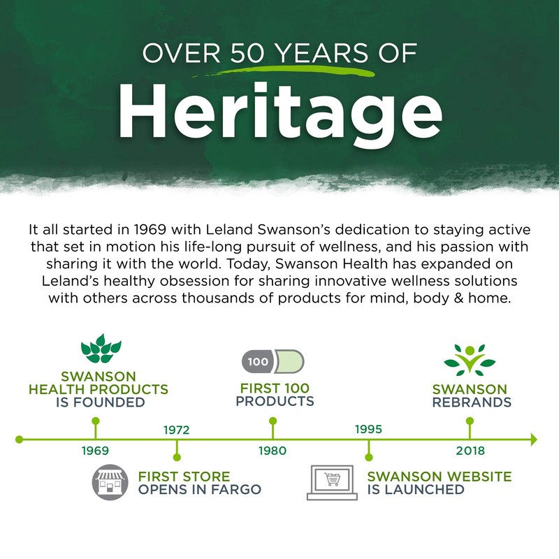 • OUR QUALITY & HERITAGE - We're control freaks...in a good way! For nearly 50 years, Swanson Health has delivered science-backed health products worldwide. In 1969, we began in Fargo, ND with a mission to offer wellness solutions that help people live simply healthier together. Our facilities are Good Manufacturing Practice (GMP) certified, and our purity and potency testing includes independent third-party labs. Clinical research, scientific consensus and usage traditions guide our innovation.