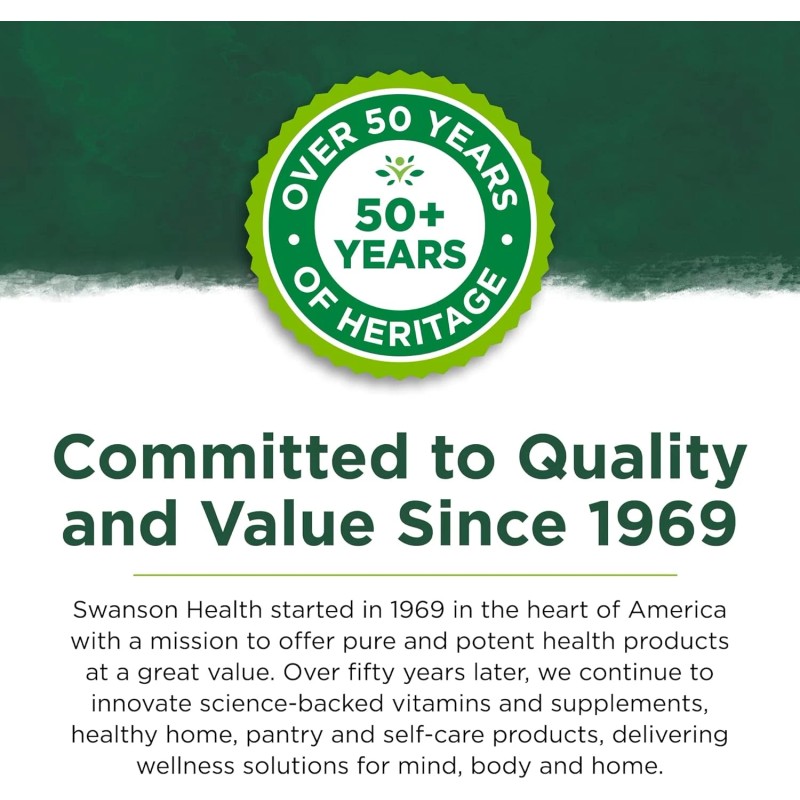 - For nearly 5 years, Swanson has delivered science-backed health products worldwide. Each wellness supplement is made in our GMP certified facilities, and our purity and potency testing includes independent third-party labs