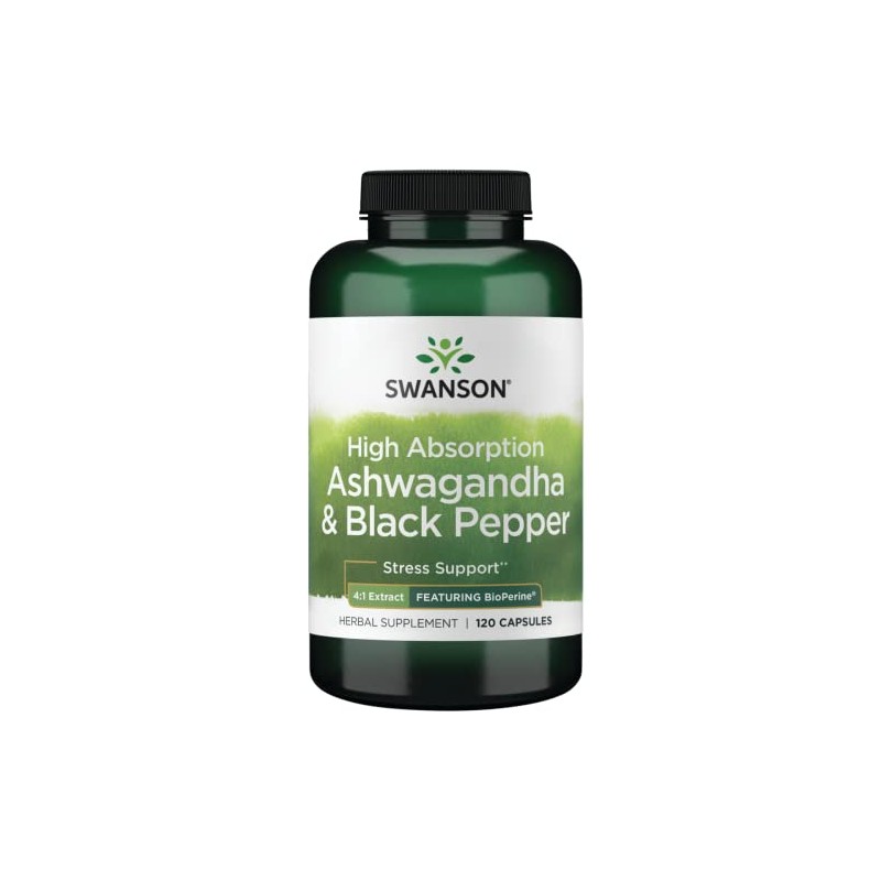 When the stress of modern life gets to you, look to the ancient wisdom of Ayurveda. In this traditional health practice of India, ashwagandha is revered for its ability to support a healthy response to daily stressors. Swanson High Absorption Ashwagandha & Black Pepper delivers a potent 4:1 extract boosted with BioPerine(R) black pepper extract for optimum absorption. A powerful adaptogen , ashwagandha has been clinically studied for its potential to promote a calm mood and a healthy stress response. It may also support healthy cognition and concentration as well as exercise endurance and recovery. More than a culinary staple, black pepper is a source of the free-radical fighting antioxidant piperine that helps to increase the body's absorption of other nutrients. Swanson High Absorption Ashwagandha & Black Pepper delivers 5 mg BioPerine, a patented, standardized extract of black pepper to help you get the most out of this stress-busting supplement.