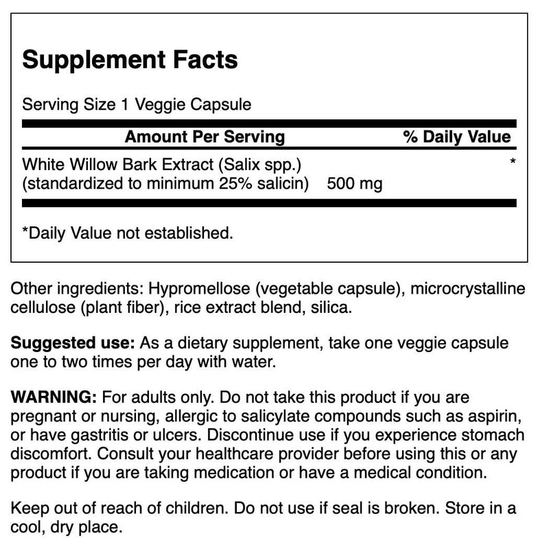 - SUPPORTS JOINT & MUSCLE COMFORT: Standardized for 25% salicin, Swanson's easy to swallow white willow bark veggie capsules provide the body with powerful nutrients to promote muscle and joint comfort with no stomach irritation!