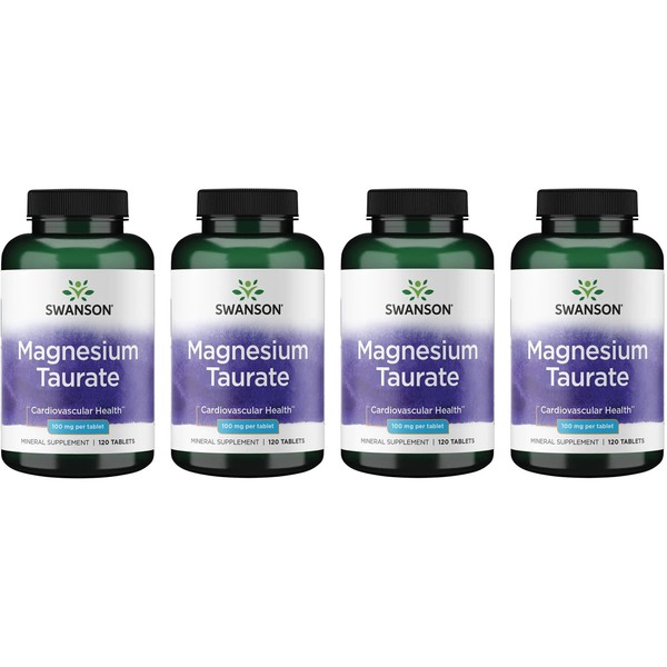 Swanson Swanson Magnesium Taurate - Mineral Supplement - Natural Magnesium & Taurine Formula- (120 Tablets, 100mg Each) (4 Pack)