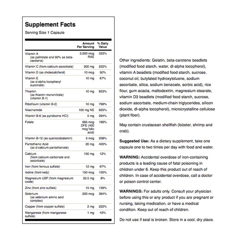 Swanson Swanson Multi and Mineral Daily Men's Women's Multivitamin Multimineral Health Supplement 250 Capsules (Caps)