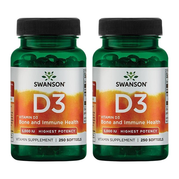 Swanson Vitamin D3 - Vitamin Supplement Promoting Bone Health & Immune System Support - Natural Support for Calcium Distribution & Absorption - (250 Softgels) 2 Pack