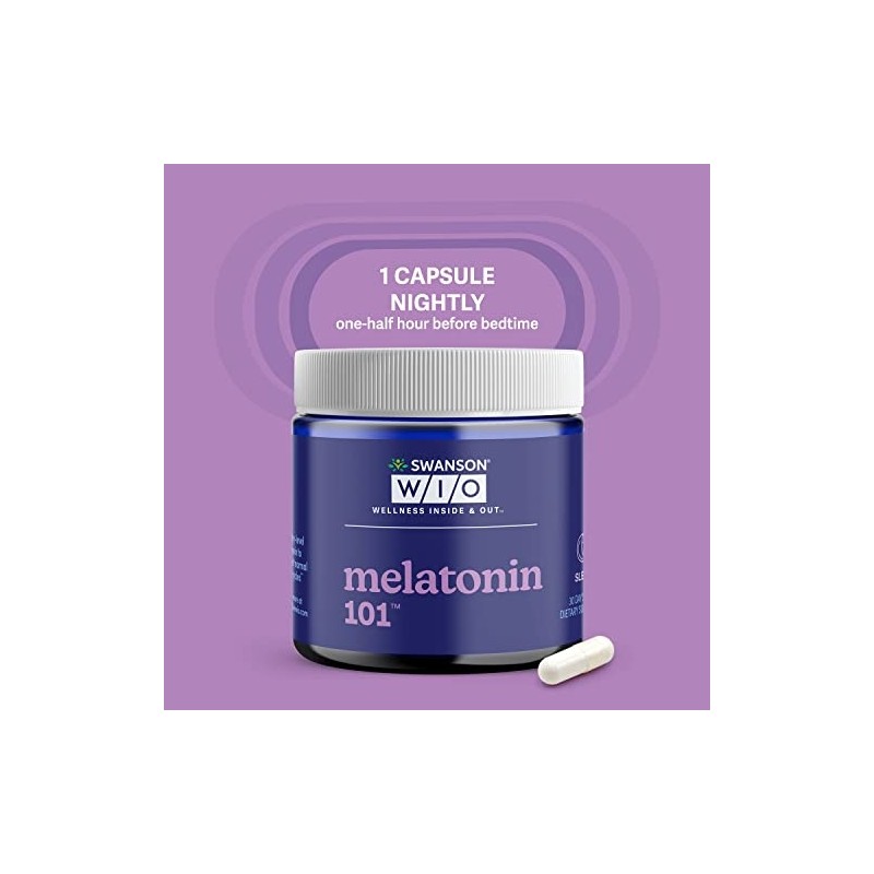 Swanson WIO™ melatonin 101™ for Better Sleep, Relax, Relaxation, Circadian Sleep Cycle Support, 3 mg Melatonin, Mental Wellness - 4 oz Bottle, 30 Capsules (30-Day Supply)