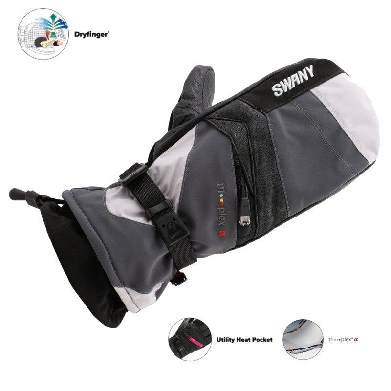 Swany Men's X-Change Sports Insulated Warm Durable Breathable Flexible Leather Winter Mittens, Light Gray/Charcoal Gray, X-Large