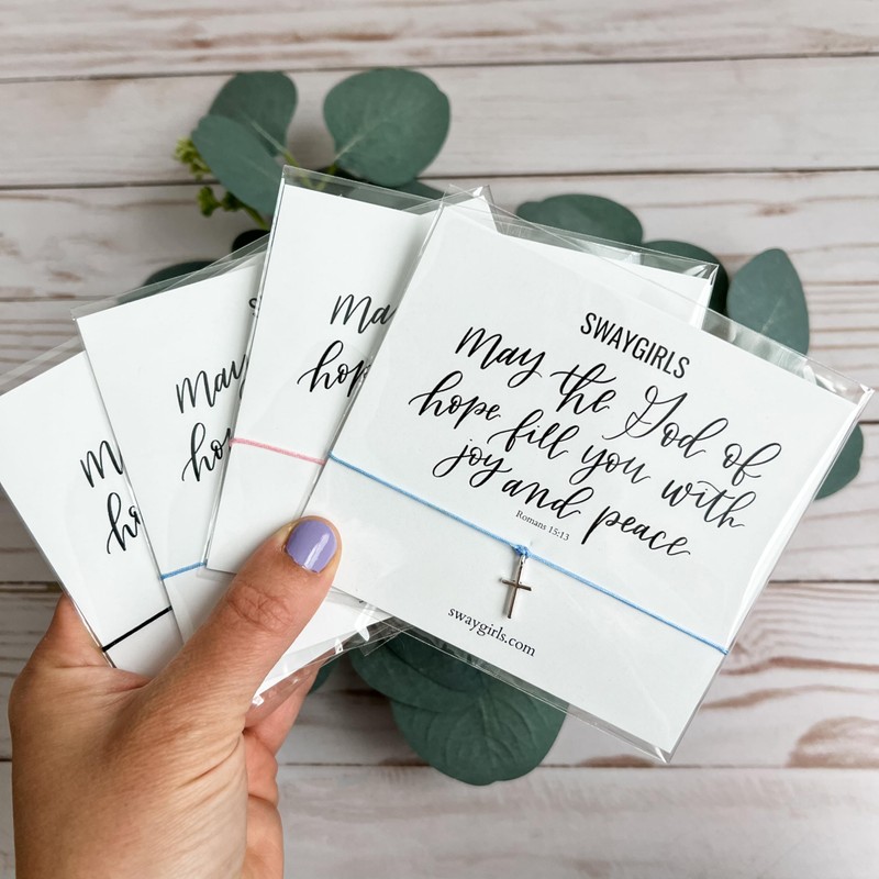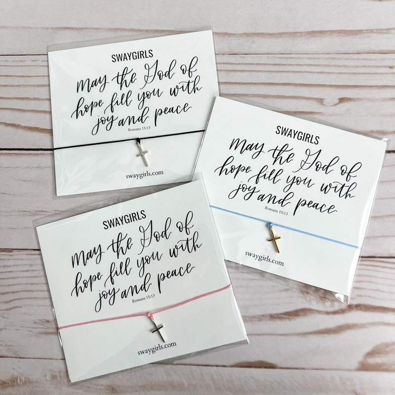 This tie cross bracelet with the Bible verse from Romans 15:13 makes the perfect affordable gift for any believer in your life.