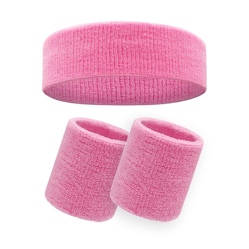 Sweatband Headband & Wristband Set – Super Absorbent Terry Cloth for Men & Women | Athletic Sweat Bands for Running, Gym, Yoga, Basketball & Tennis – Comfortable Sports Accessories (Pink)