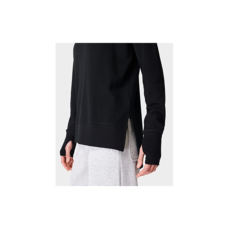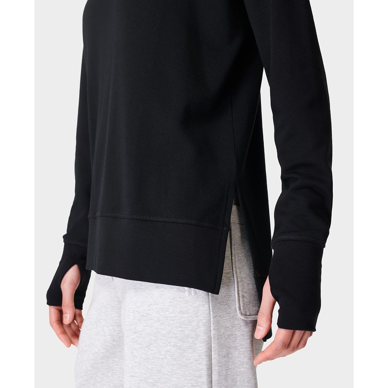 Sweaty Betty Women's After Class Longline Crewneck with Side Slit Sweatshirt Black a