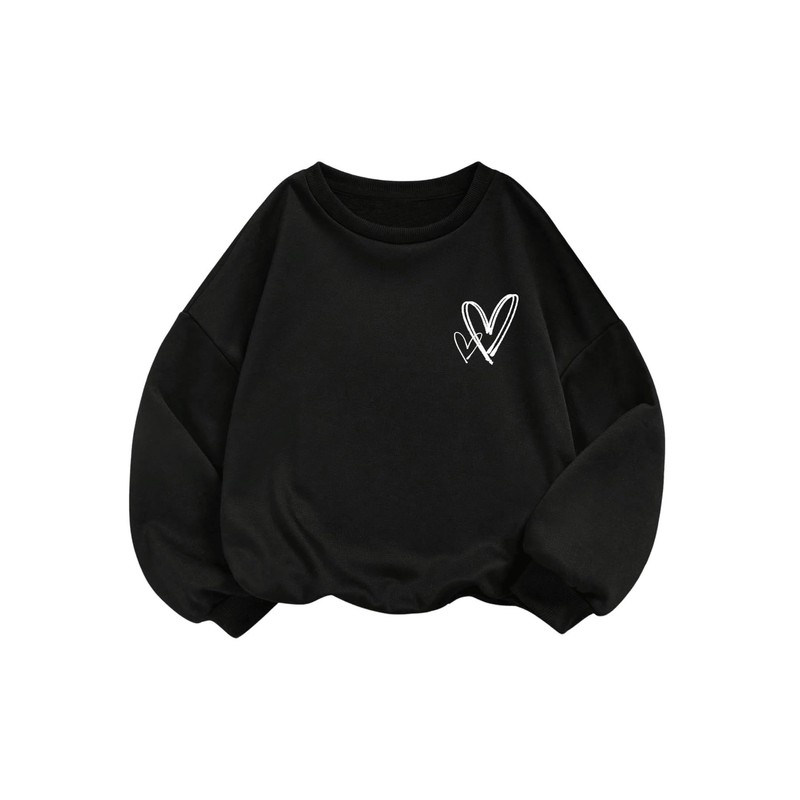 - Features: Heart graphic, long sleeve, round neck, drop shoulder, girls sweatshirts