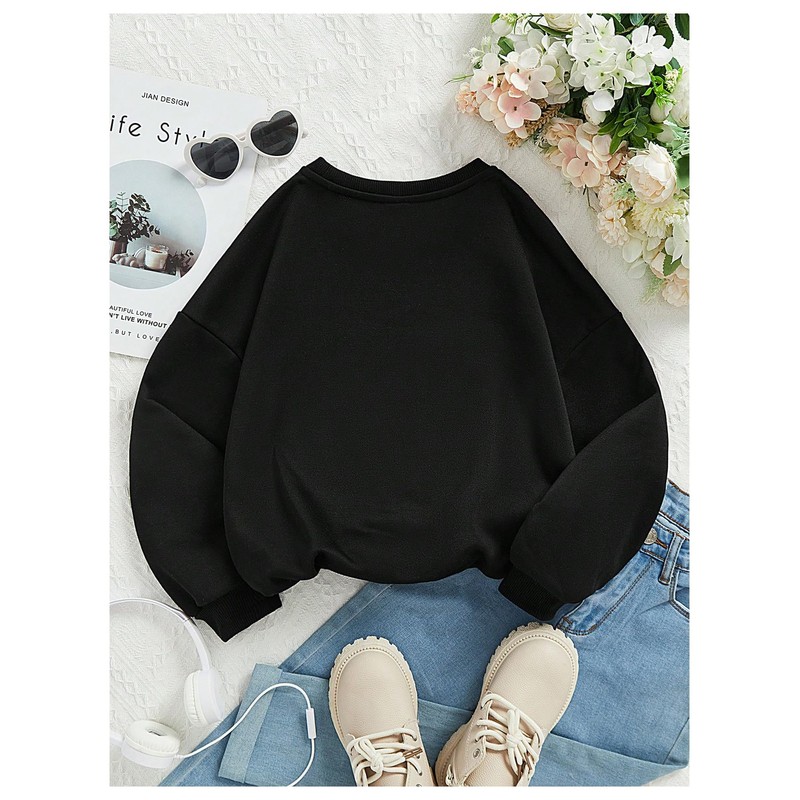 SweatyRocks Girl's Graphic Sweatshirts Crewneck Drop Shoulder Long Sleeve Pullovers Tops Black 8Y