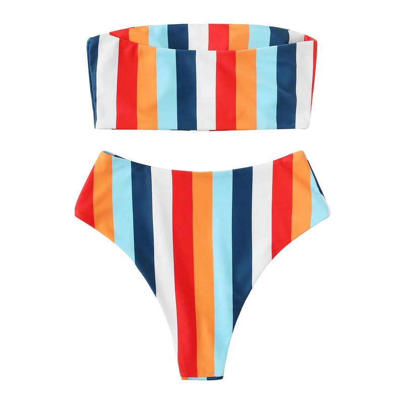 - Features: Bandeau, stripe, pading bra, high waist, two piece swimsuits.
