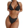 SweatyRocks Women's Ring Linked Halter Push Up Bikini Swimsuit High Stretch Bathing Suit Swimwear Set Swimming Suit Two Piece, Black, Medium