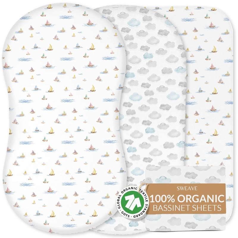 - Pure Organic Comfort: Elevate your baby's sleep with Sweave’s Moses Basket Sheets, expertly crafted from 100% GOTS Certified Organic Cotton. Experience the epitome of comfort and care as your little one rests on our fitted sheets for Moses Basket Mattresses. Our Moses Basket Bedding offers a haven of softness that is exceptionally gentle on your baby's sensitive skin.