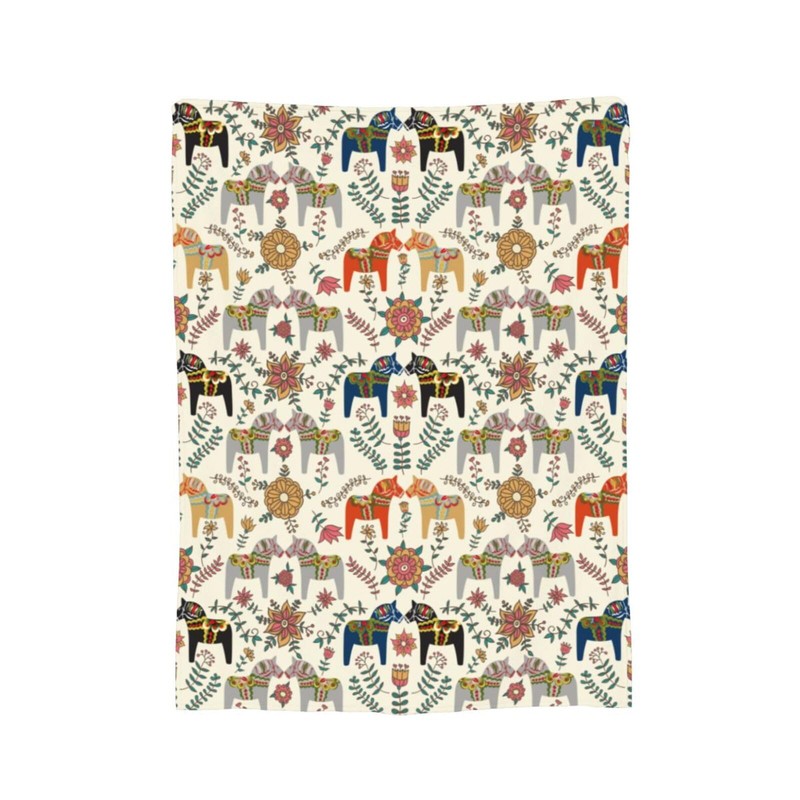 Swedish Dala Horses Throw Blanket Soft Fleece Blanket Men Women Gift for Kids Boys Girls for Party Couch Sofa Bed Deco Blankets 80x60 Inches