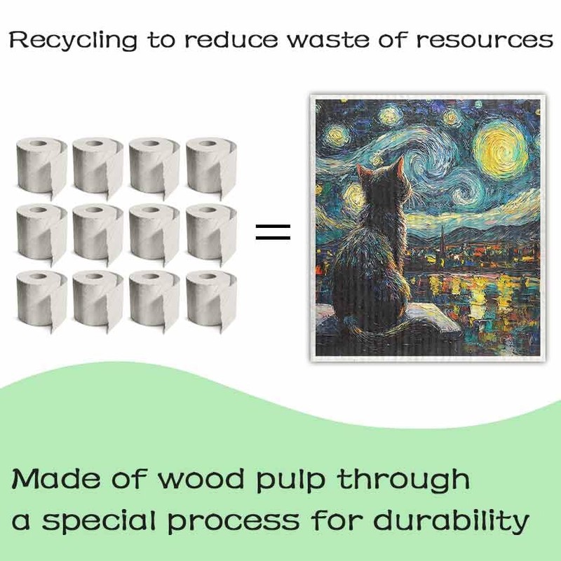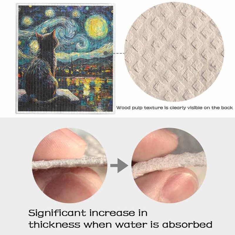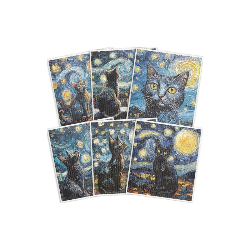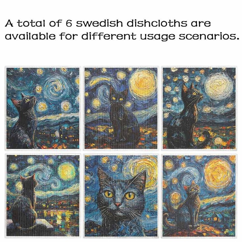 Swedish Dishcloths for Kitchen – 6 Pack cat Cellulose Reusable Cleaning Paper Towels – Soft, Quick-Drying, Washable Dish Rags for Kitchen, Counters & More (Cat)